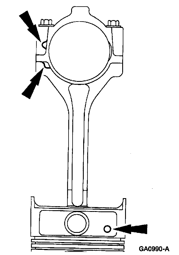 1. NOTE: Connecting rod must be installed into piston with identification markings toward front.