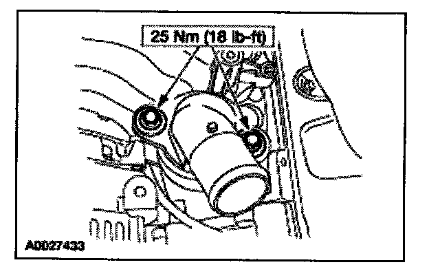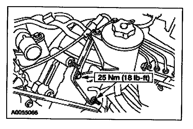 95. Position the power steering reservoir and install the two studs and one bolt.