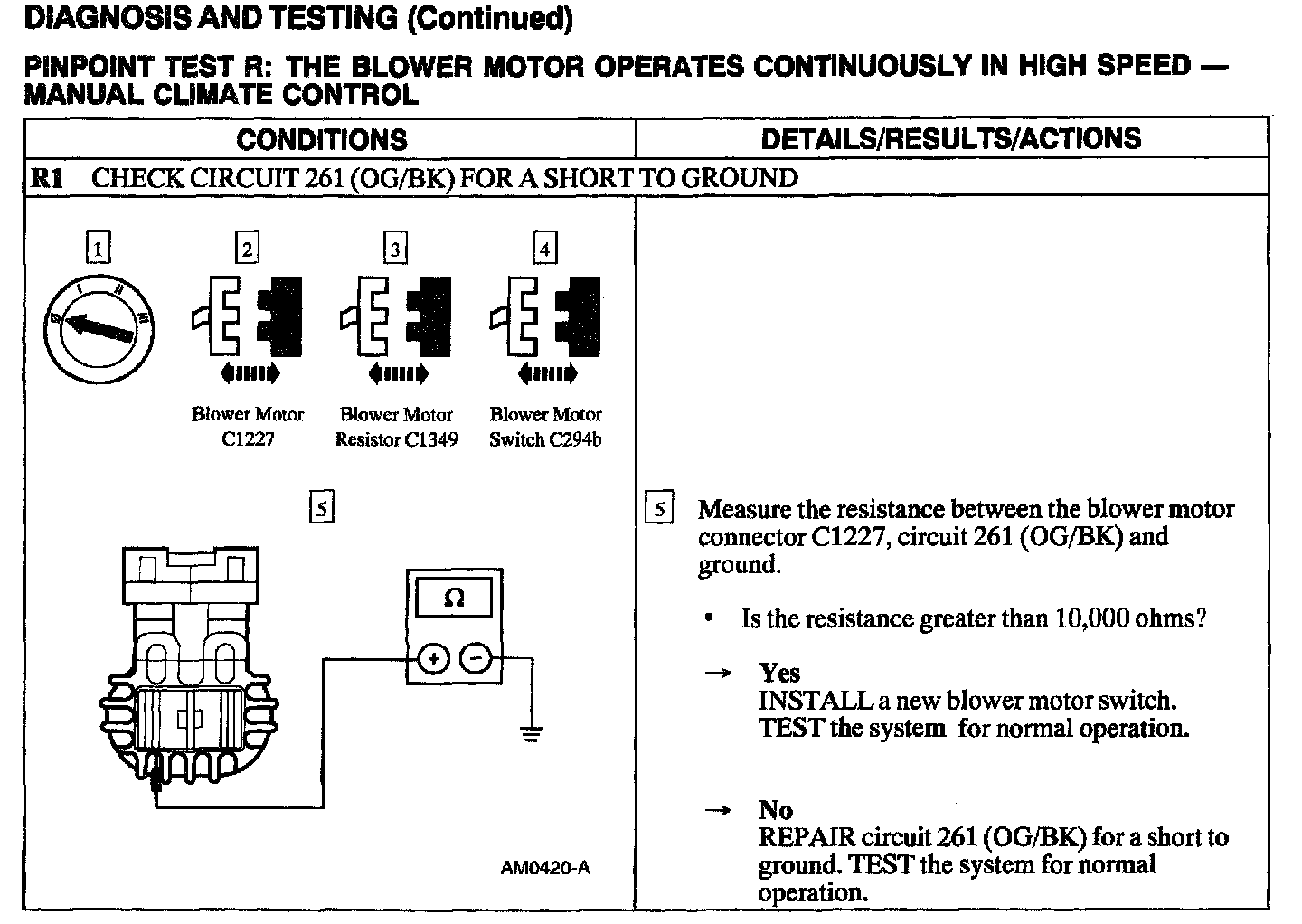 Test R: Blower Motor Operates Continuously In High Speed
