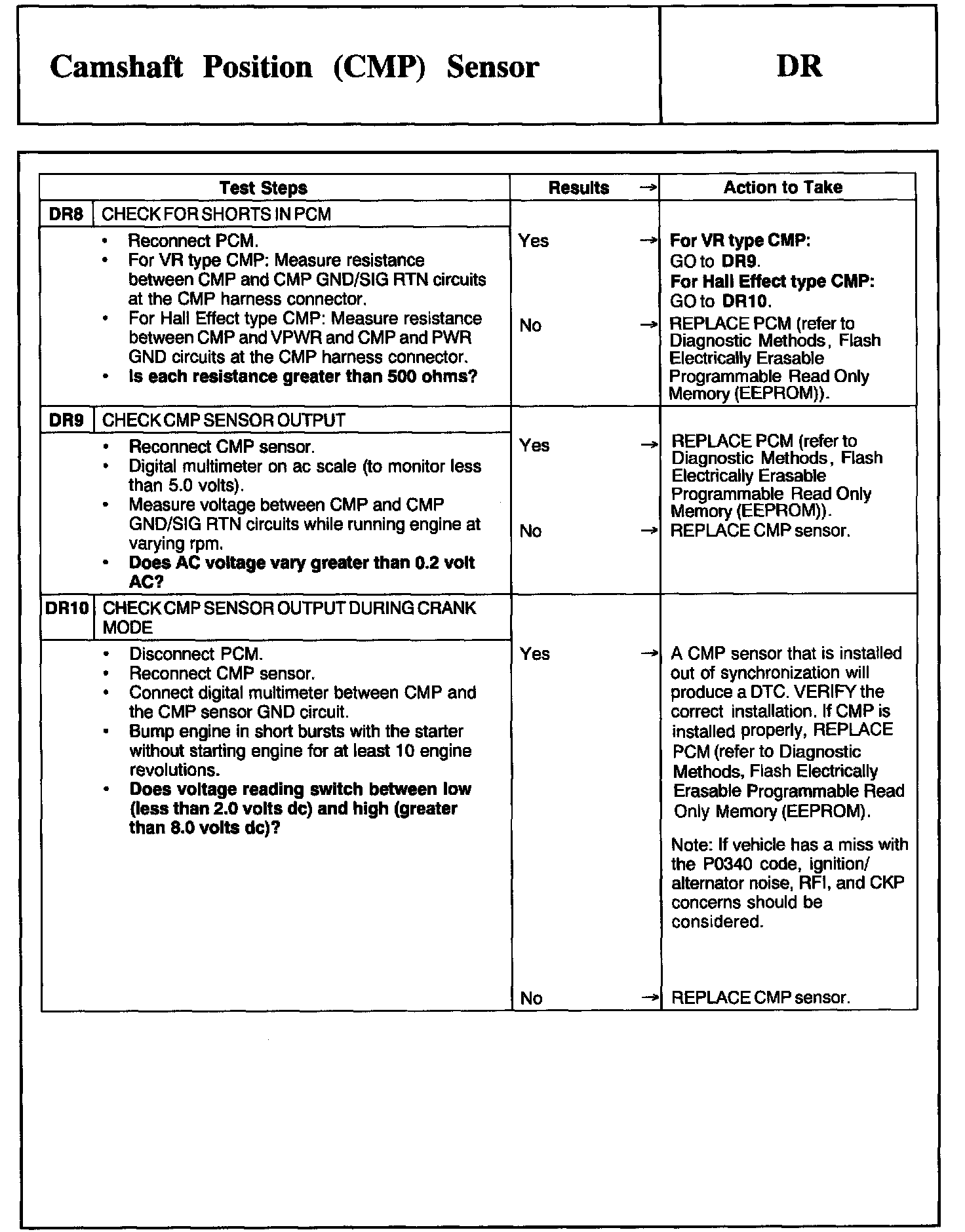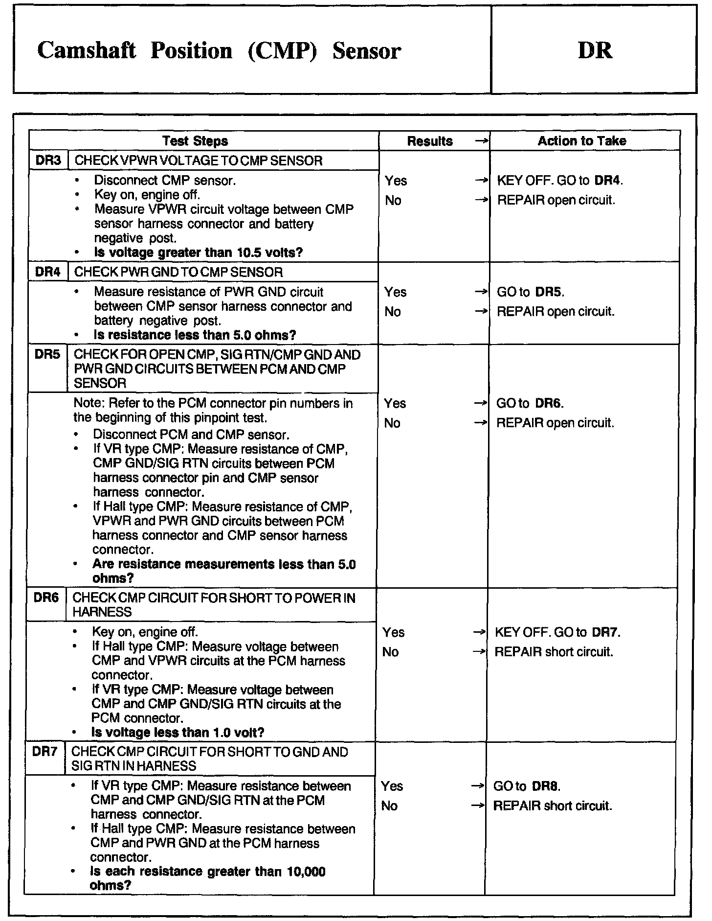 Tests DR: Camshaft Position (CMP) Sensor