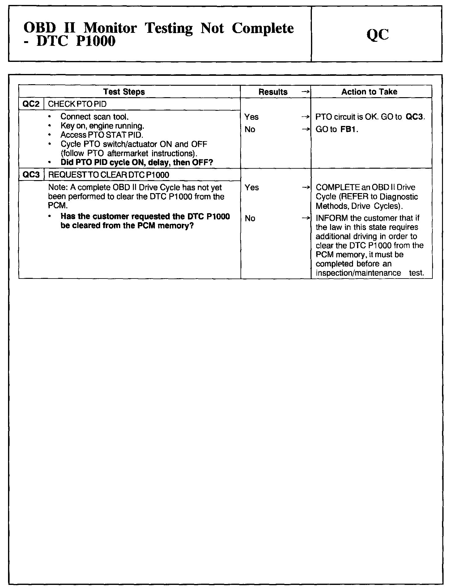 Tests QC: OBD II Monitor Testing Not Complete - DTC P1000