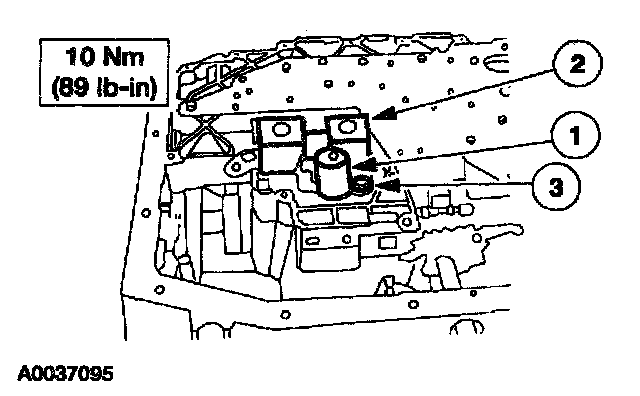 1. Remove the torque converter clutch (TCC) solenoid and the shift solenoid.