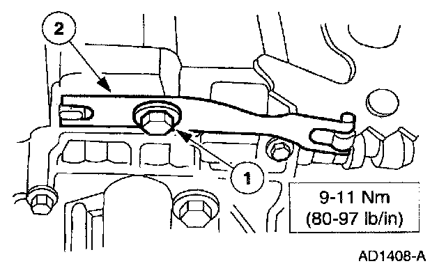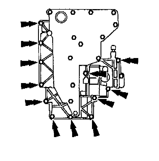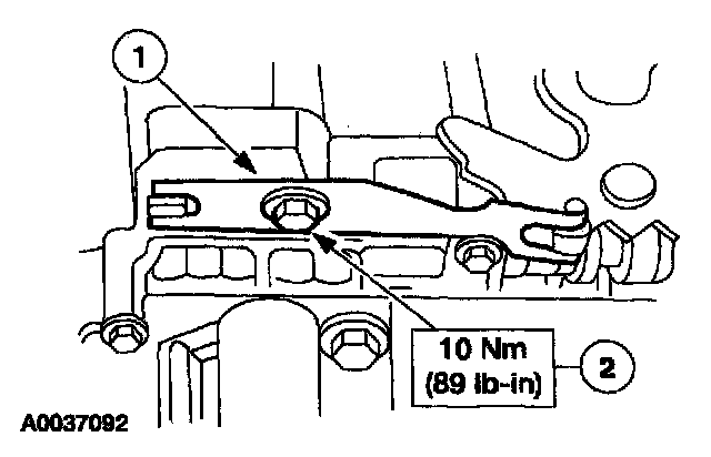 1. NOTE: Make sure that the drive pin of the manual valve detent lever assembly engages the manual valve in the correct location prior to installing the bolts.