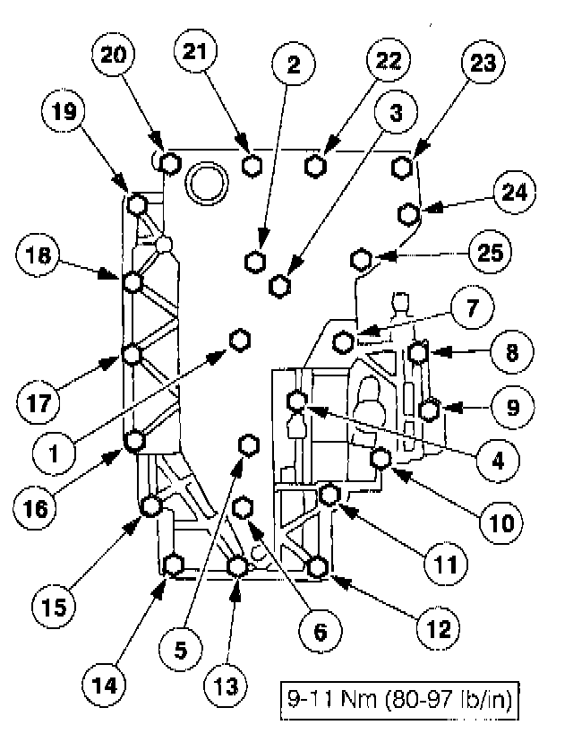 5. Tighten the main control valve body bolts in the sequence shown.