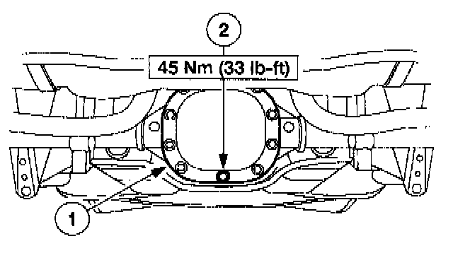 Fill the rear axle with 1.8 liters (3.75 pints) of lubricant and install the fill plug
