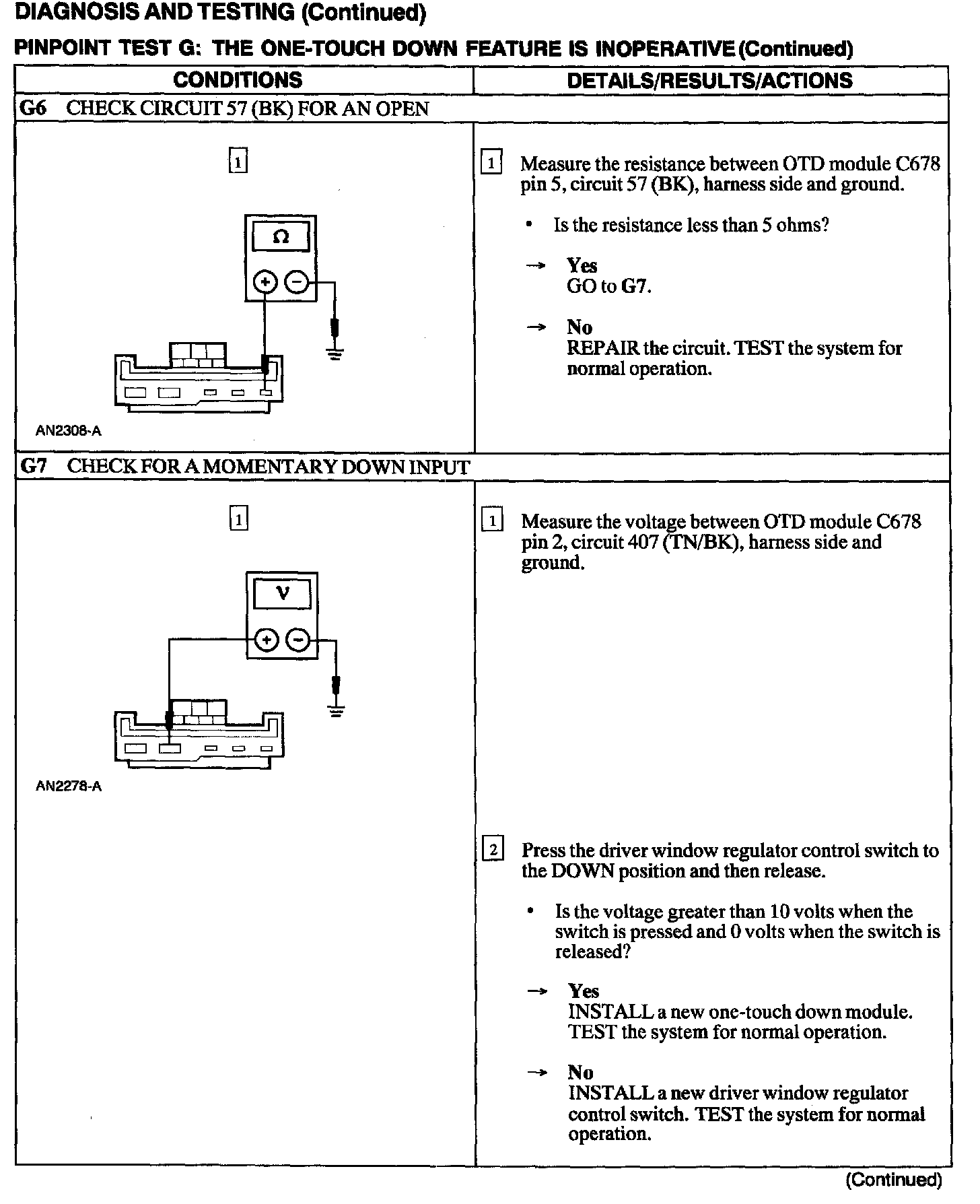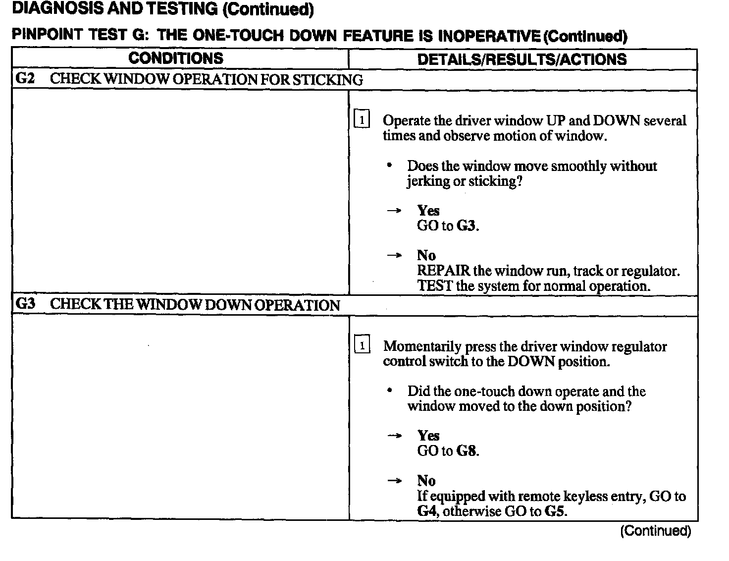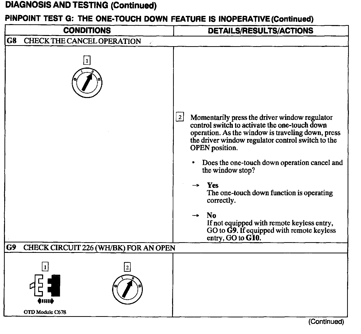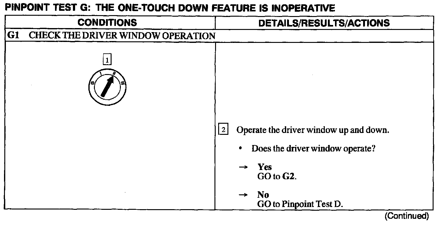 Test G: One Touch Down Feature Is Inoperative