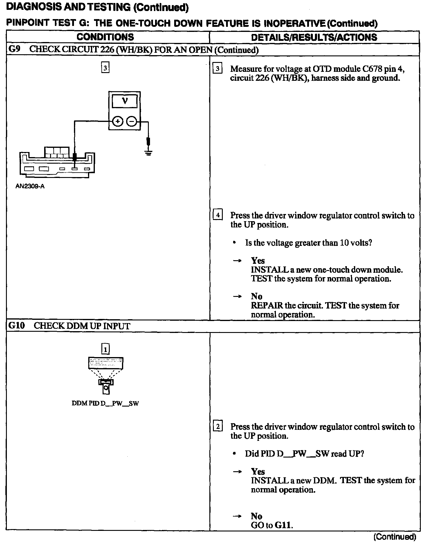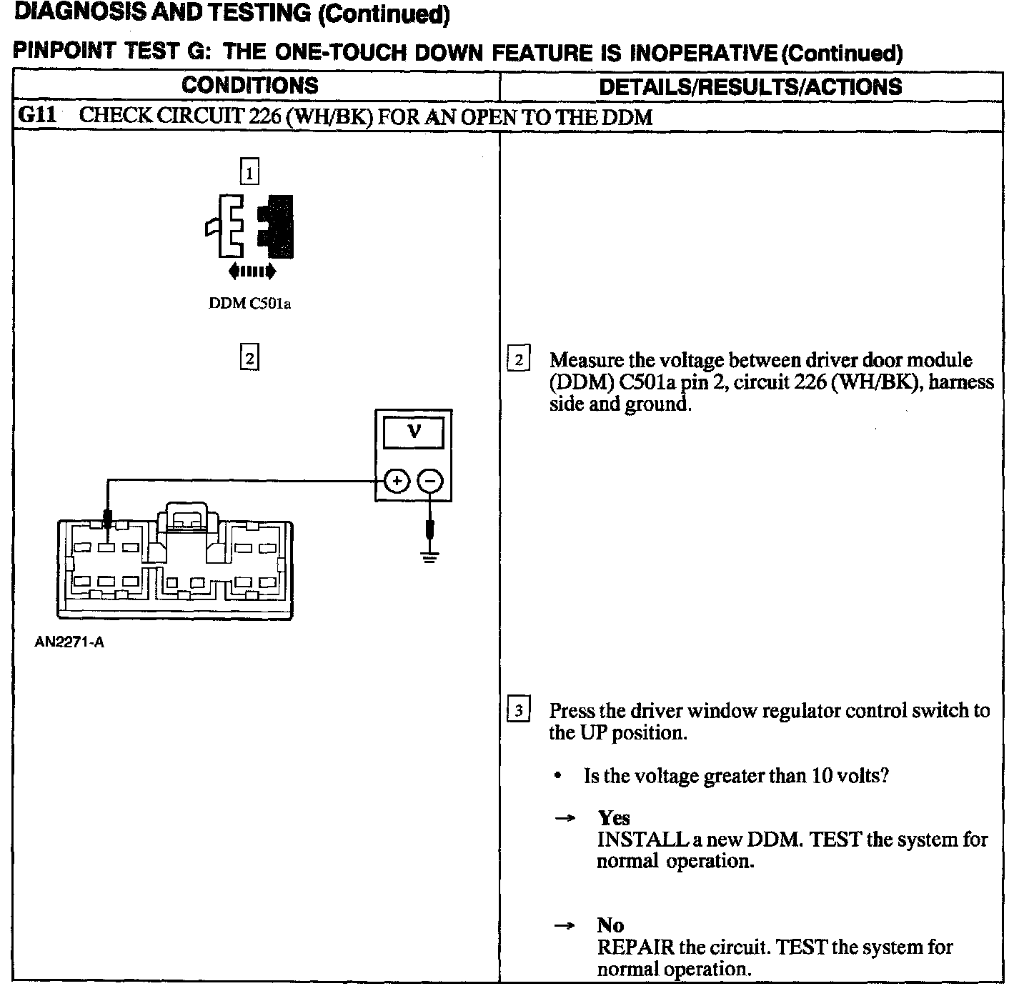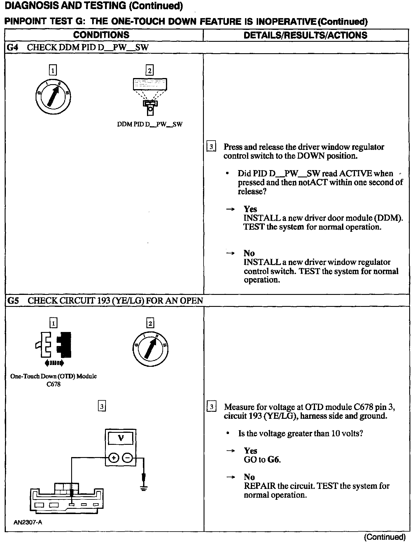 Test G: One Touch Down Feature Is Inoperative