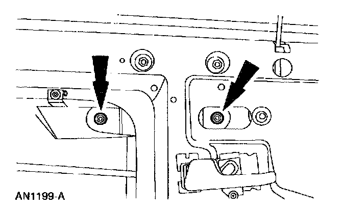 ^ Using the special tool, install two spacers and two 1/4-inch rivets (use of 1/4 - 20 x 1 inch screw and washer assemblies and 1/4 inch - 20 nut and washer are optional). Tighten the nut (if used) to 13 Nm (10 Lb-Ft).