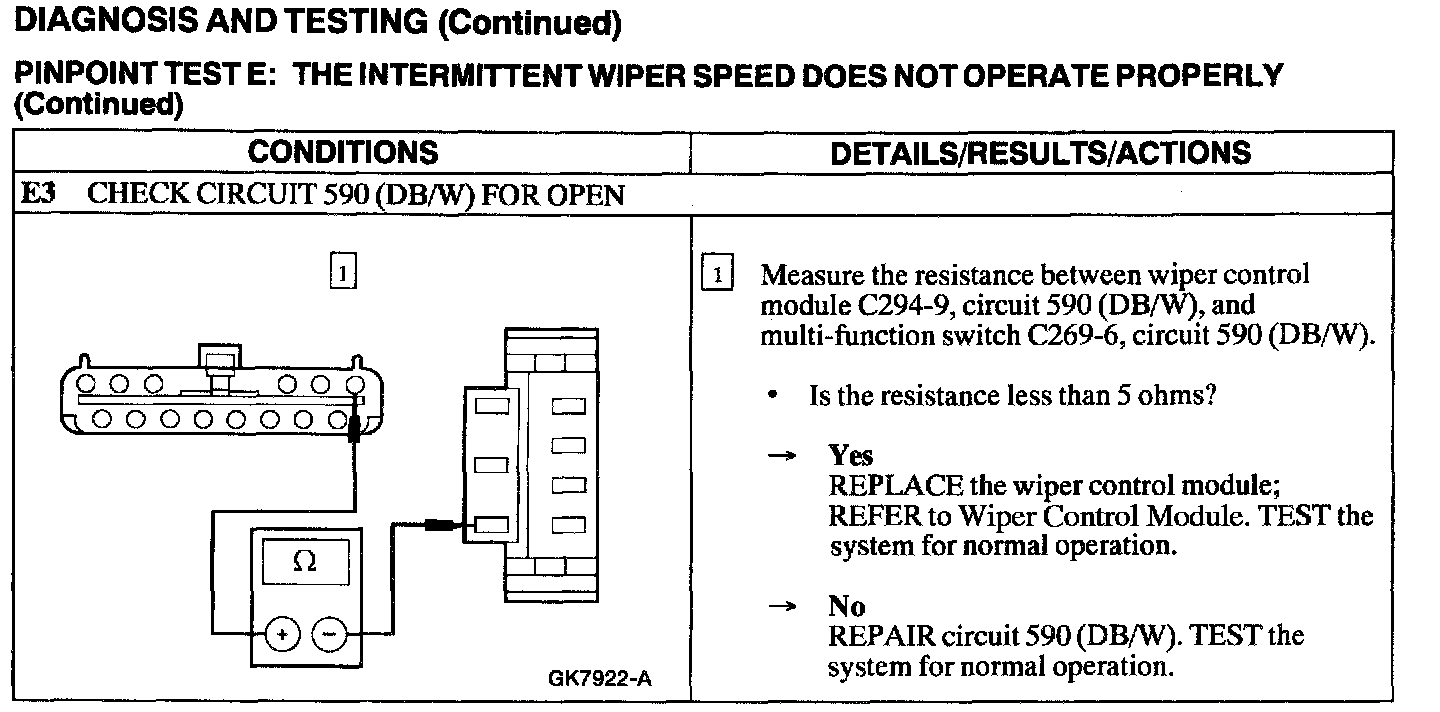 Test E: Intermittent Wiper Speed Does Not Operate Properly