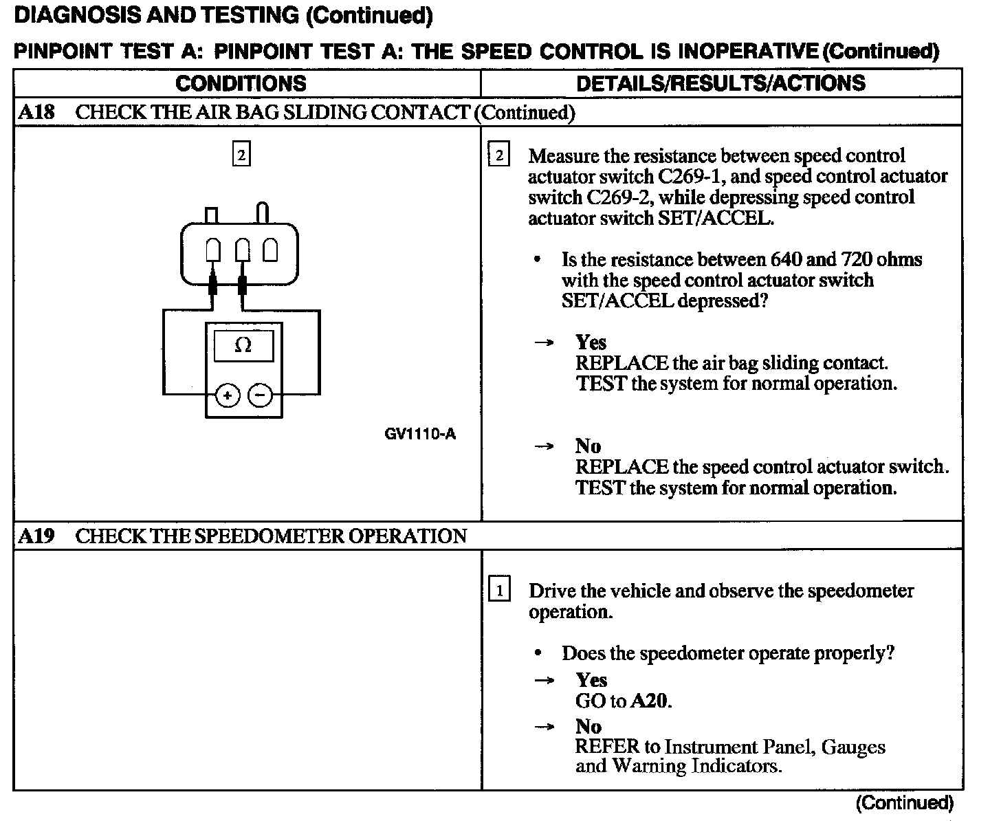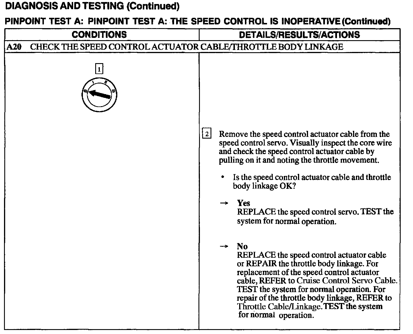 Test A: Speed Control Is Inoperative