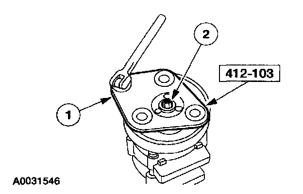 CAUTION: Do not use air tools. The A/C clutch field coil can be easily damaged.