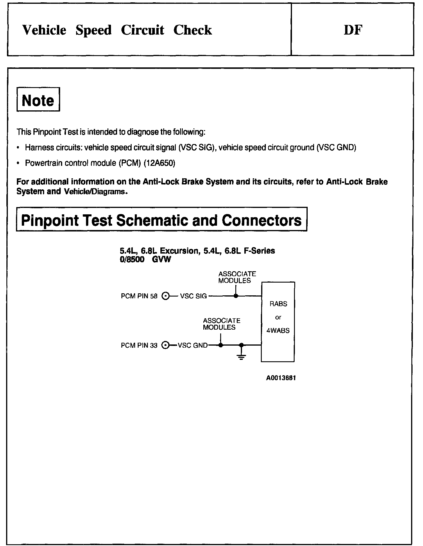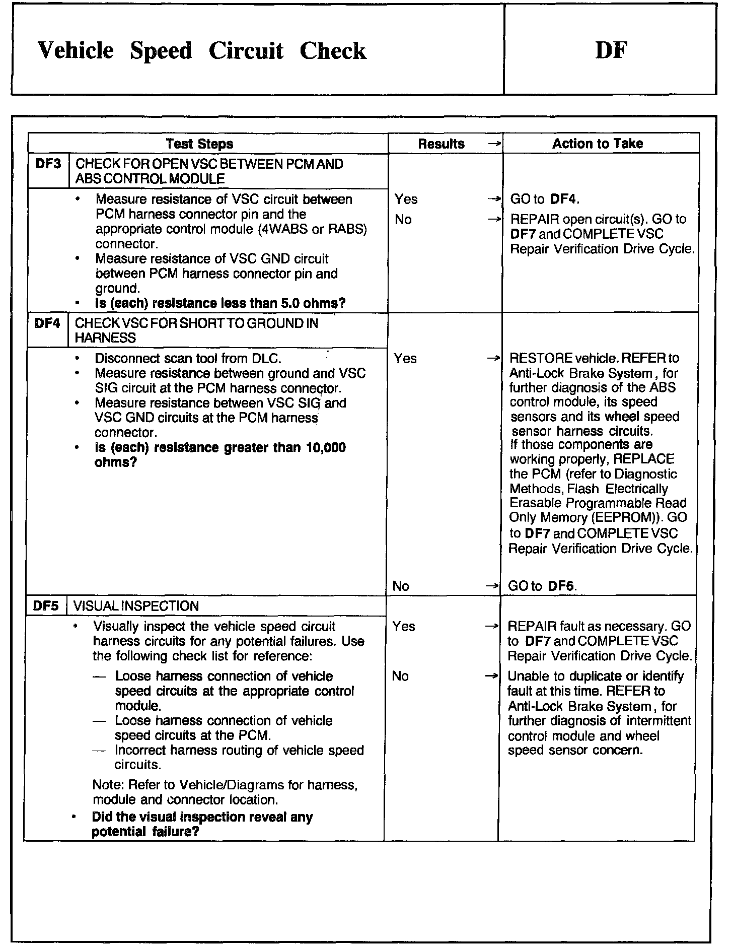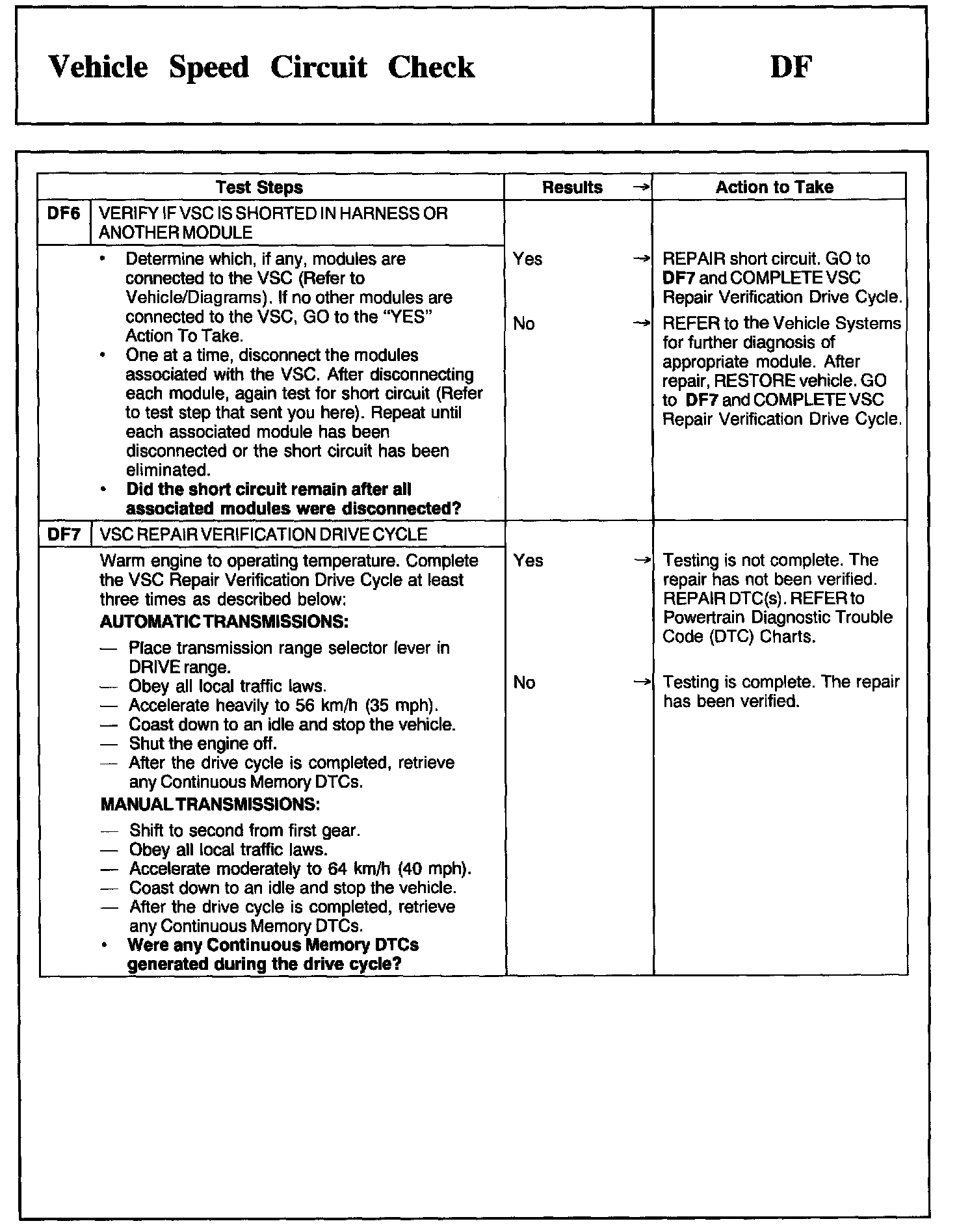 Tests DF: Vehicle Speed Circuit Check