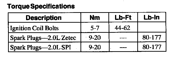 Torque Specifications: