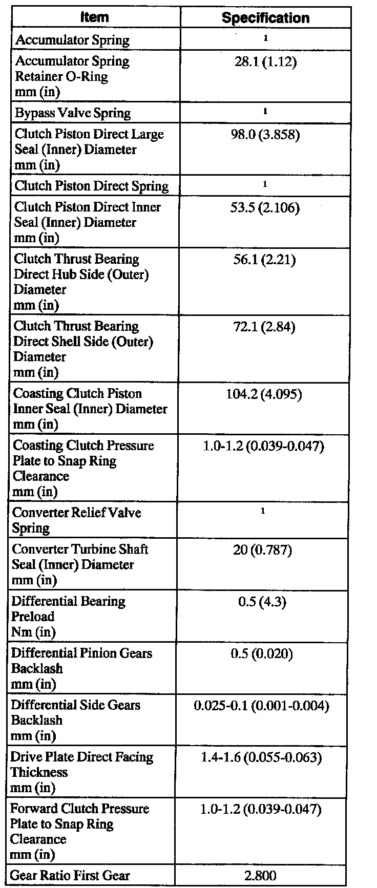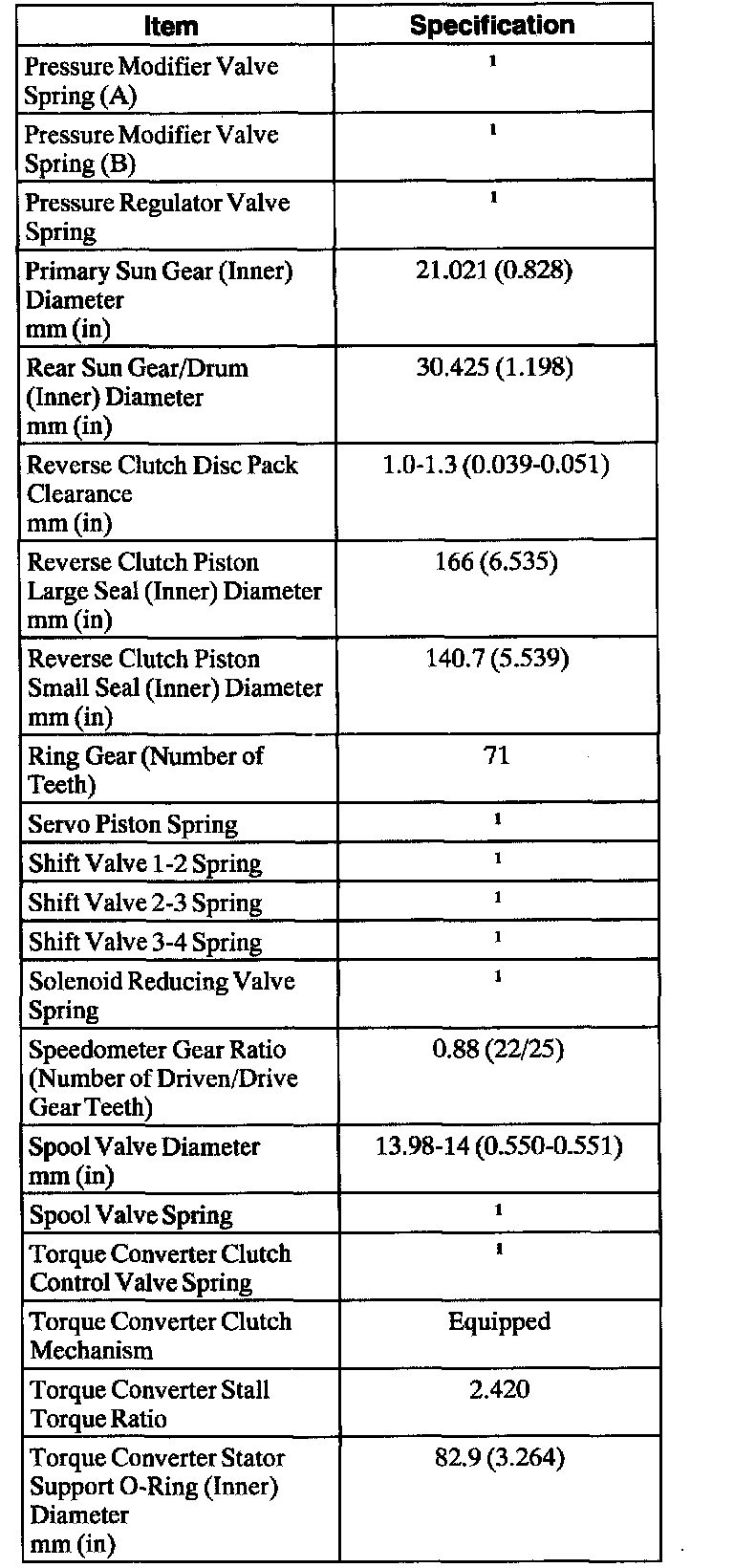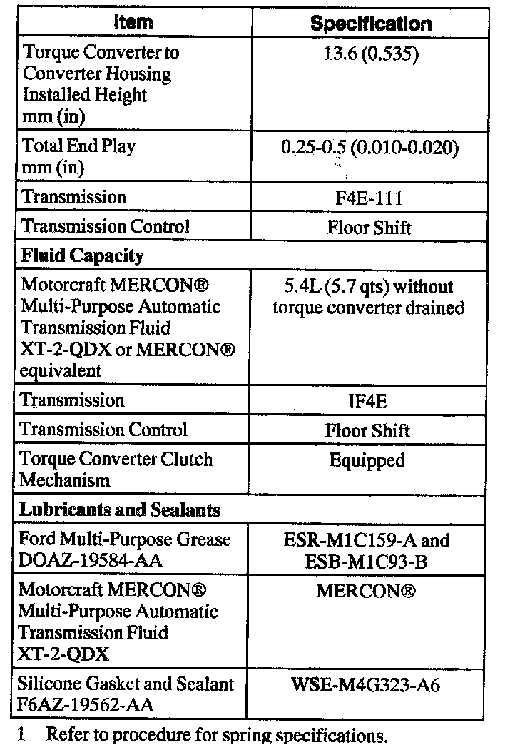 Automatic Transaxle/Transmission1 Refer to procedure for spring specifications.