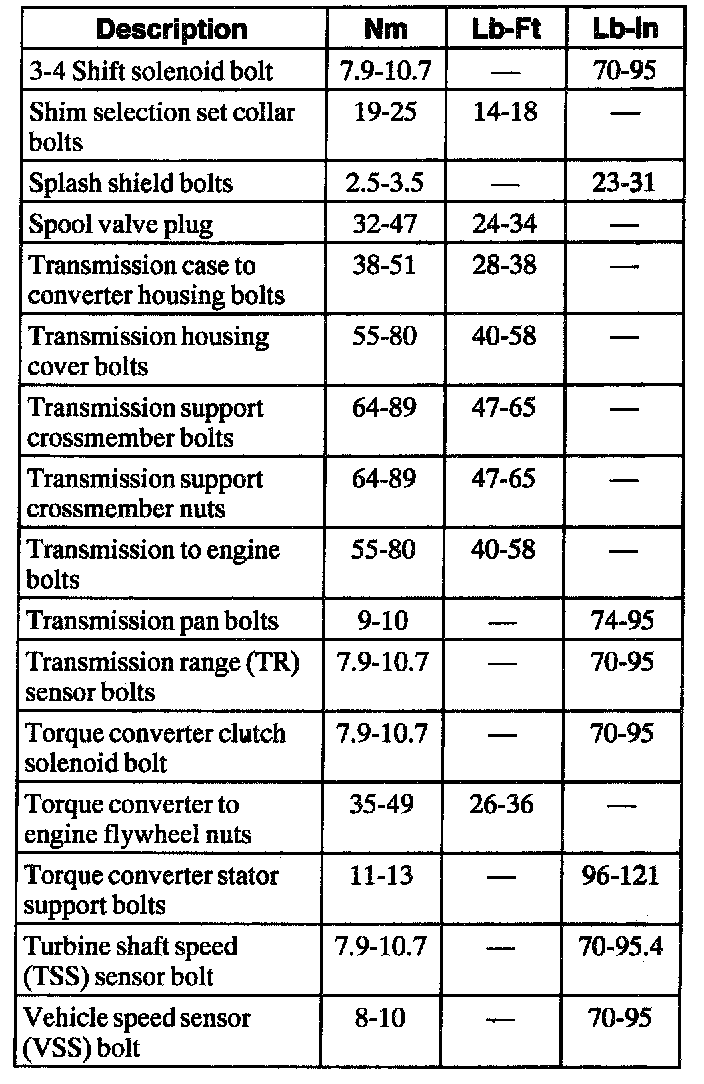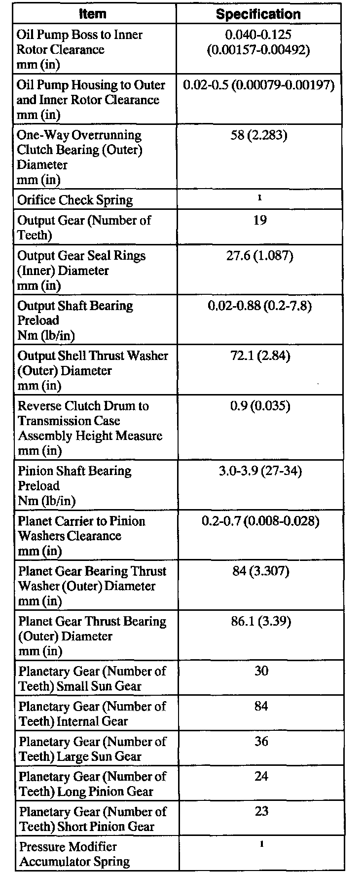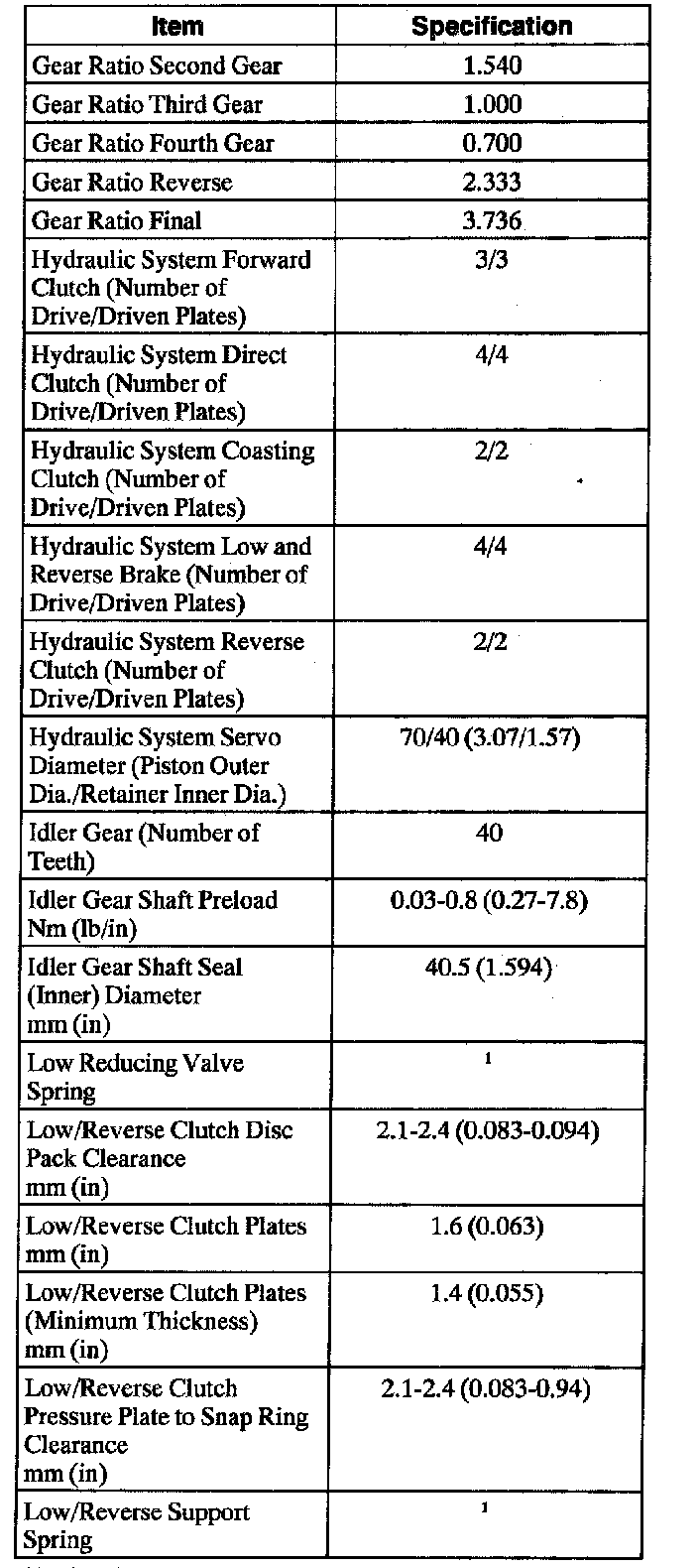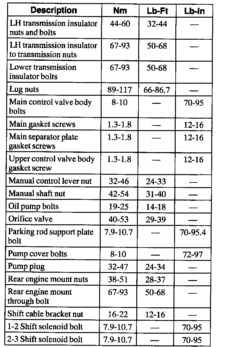 Automatic Transaxle/Transmission1 Refer to procedure for spring specifications.