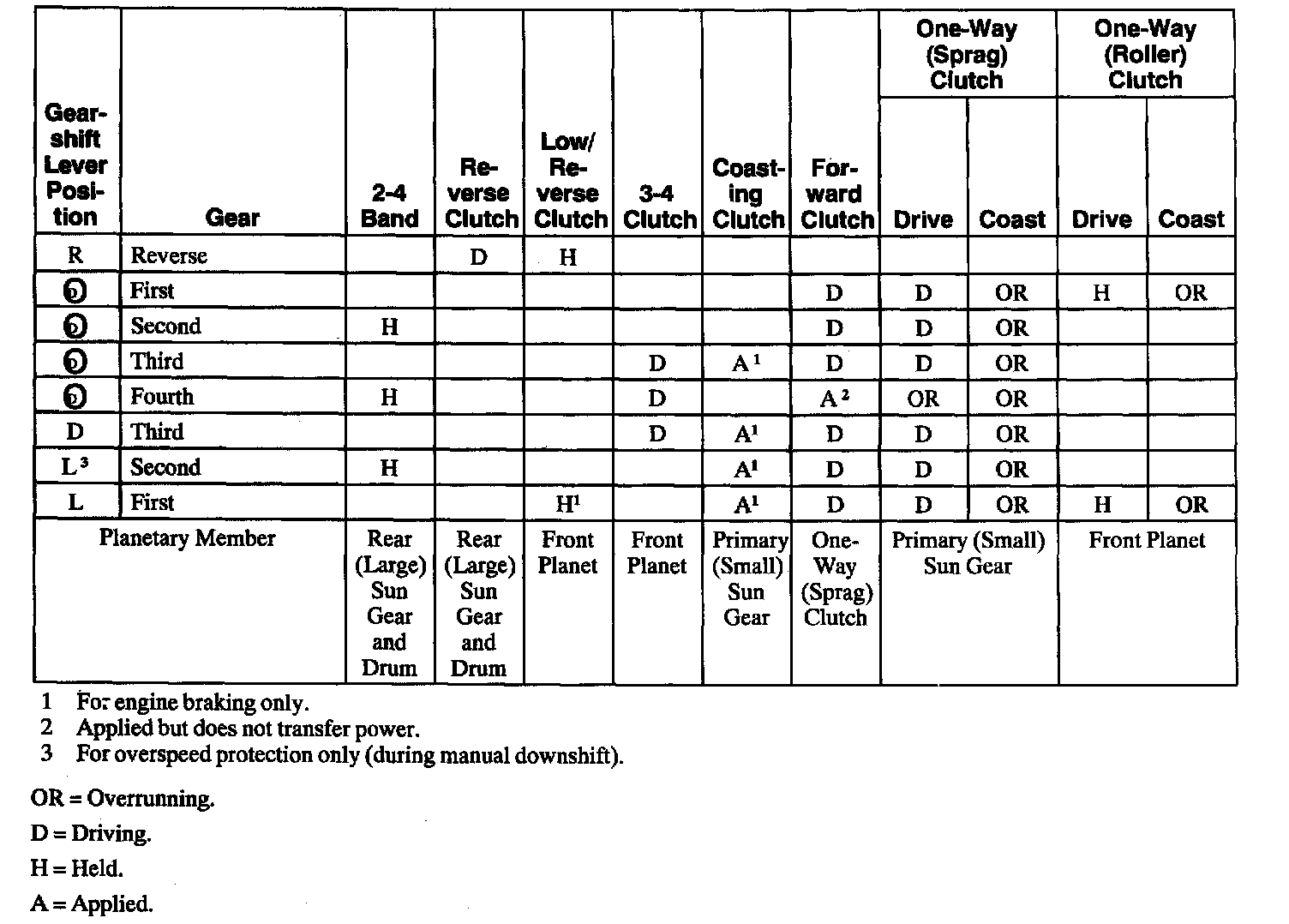 Clutch/Band Application Charts