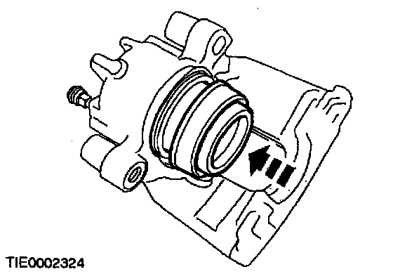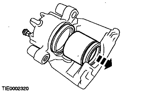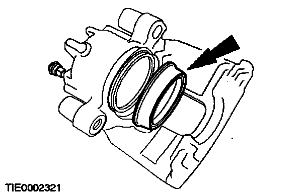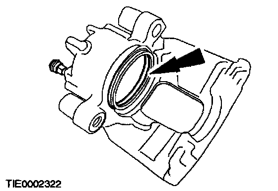 6. Inspect the caliper piston and the piston bore for pitting or scoring and install a new piston as necessary.