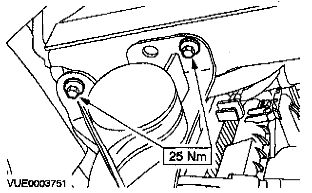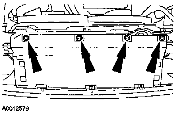11. Remove the radiator support bracket bolts.