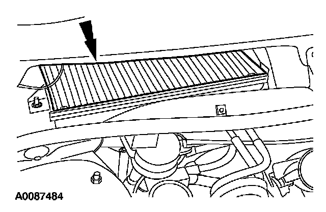 - The pollen filter is positioned on the passenger side below the cowl grille.