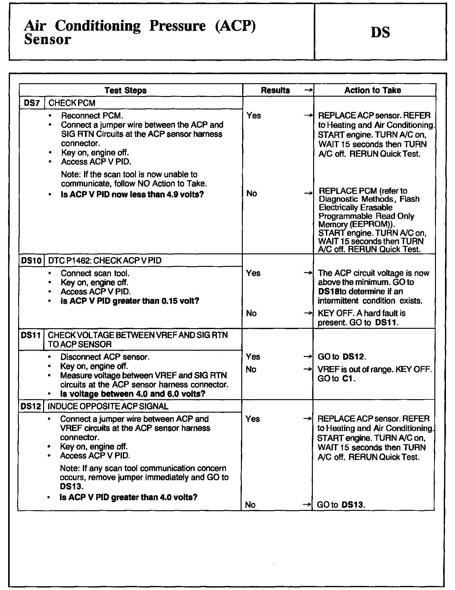 Tests DS: Air Conditioning Pressure (ACP) Sensor
