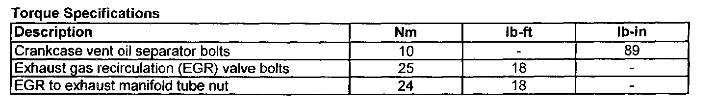 Torque Specifications: