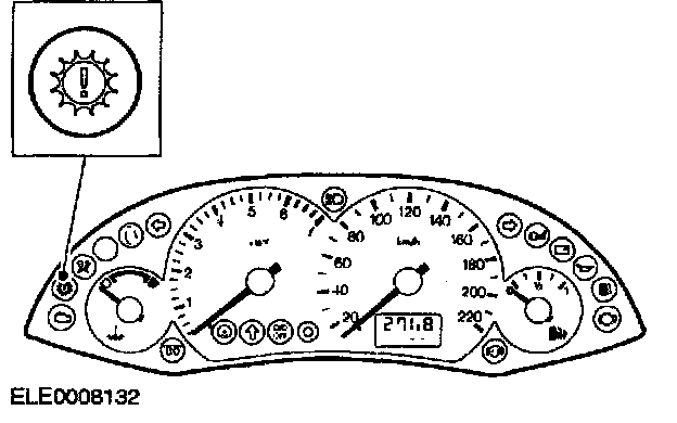 The powertrain warning indicator is located in the instrument cluster and is colored orange.