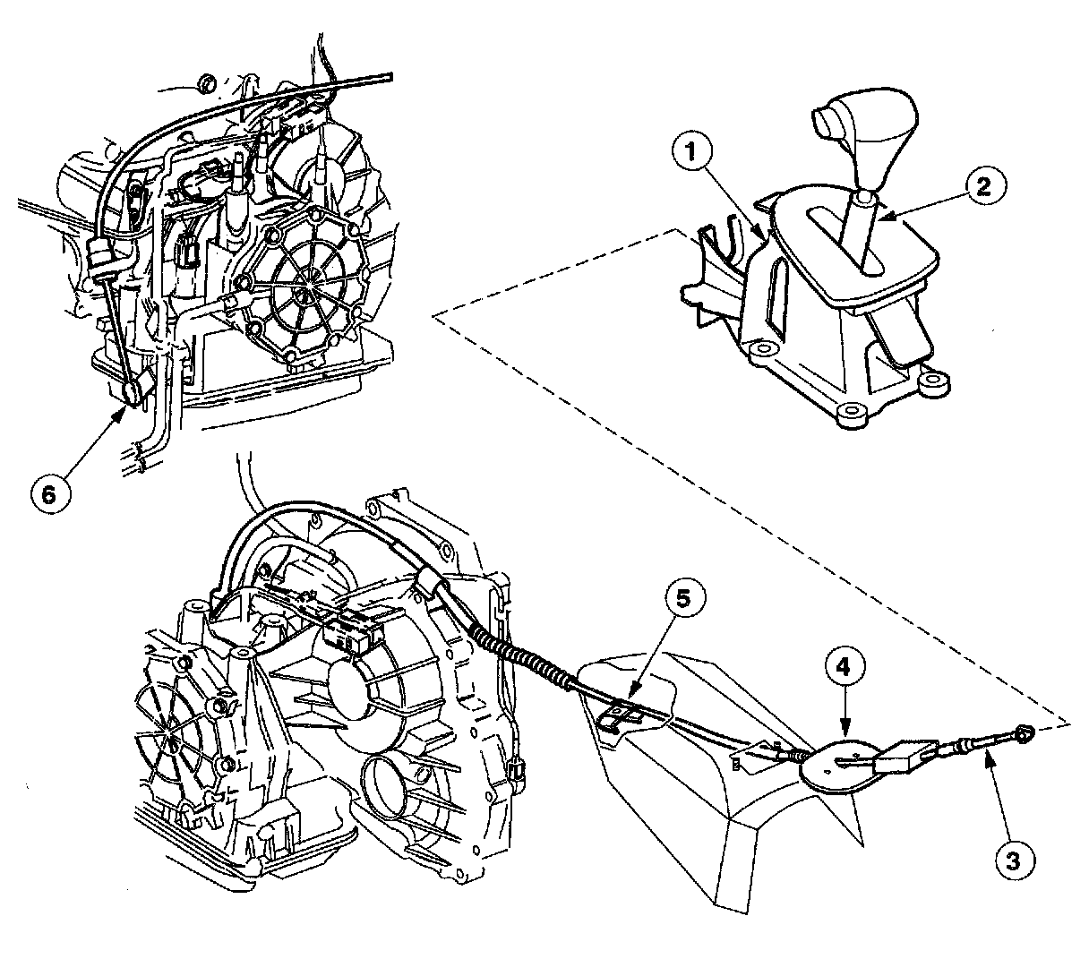 - At the transaxle end the selector lever cable is attached to a ball on the lever on the shift shaft lever through the transmission range (TR) sensor.