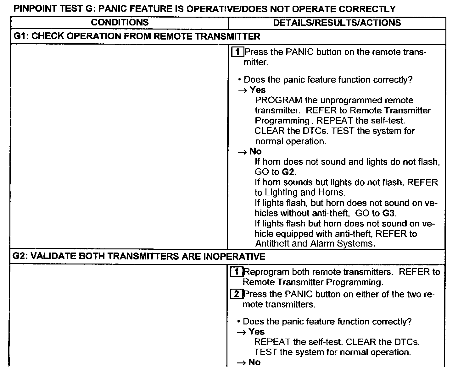Test G: Panic Feature Is Operative/Does Not Operate Correctly