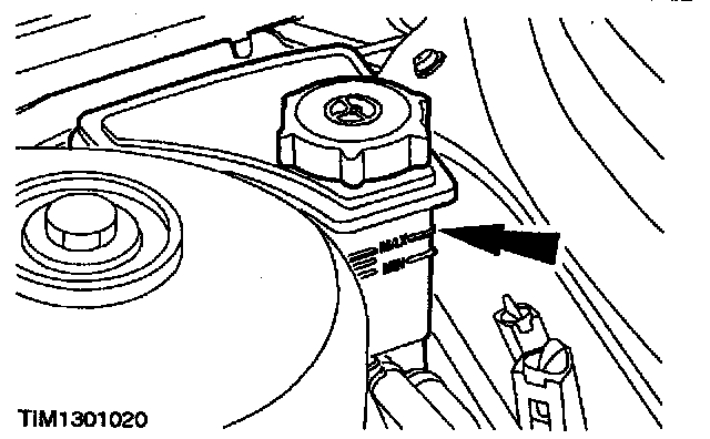 4. Fill the power steering fluid reservoir to the MAX mark with power steering fluid.