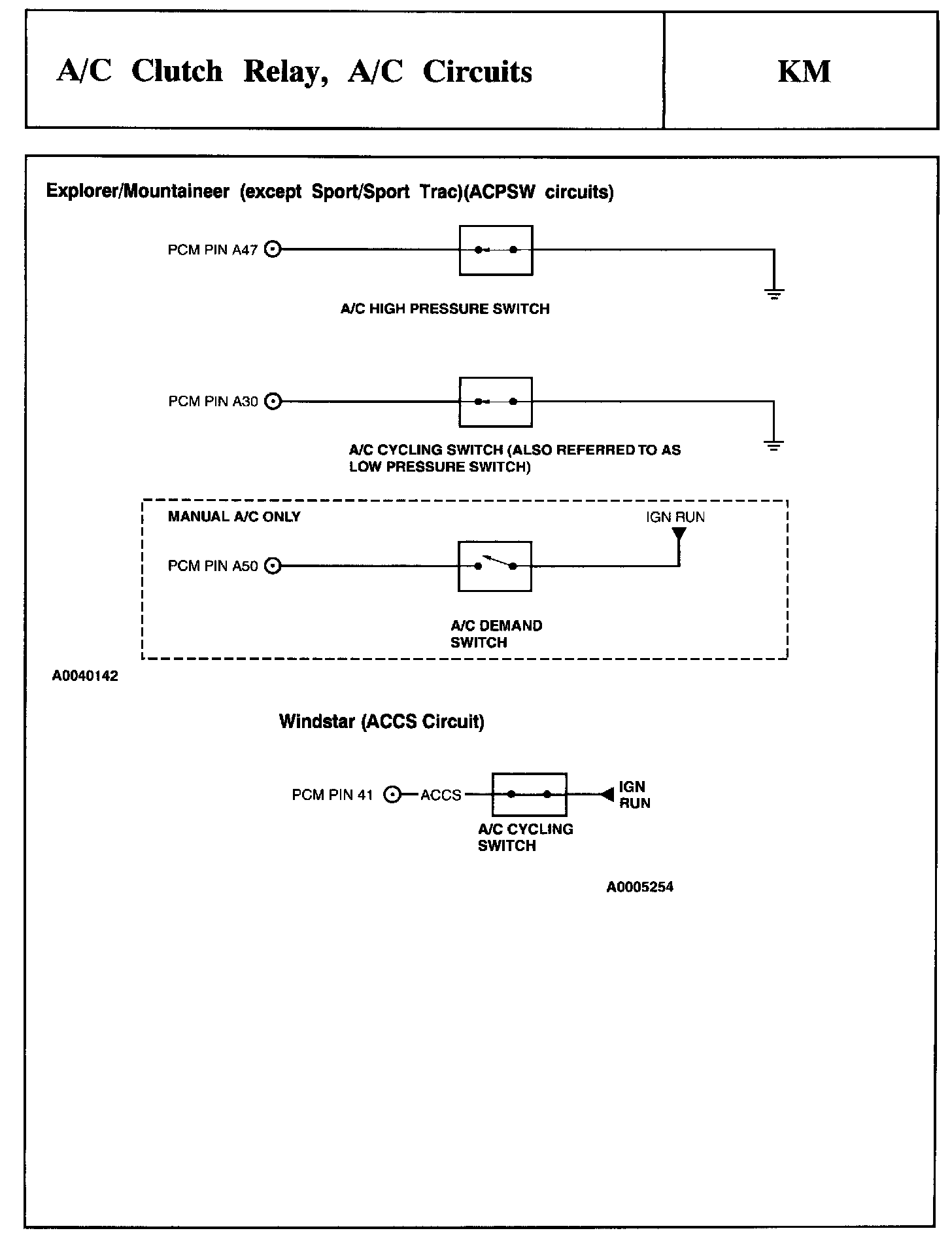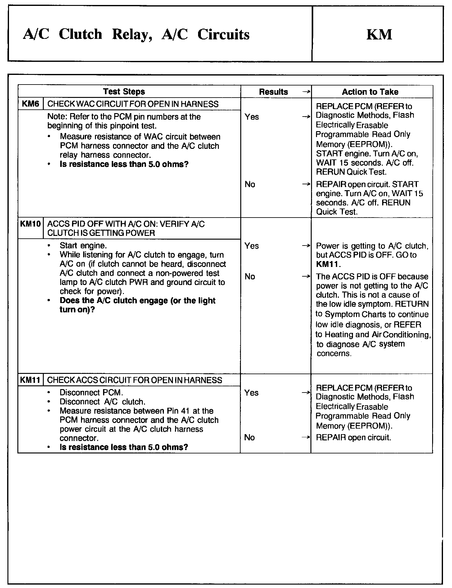 Tests KM: A/C Clutch Relay, A/C Circuits