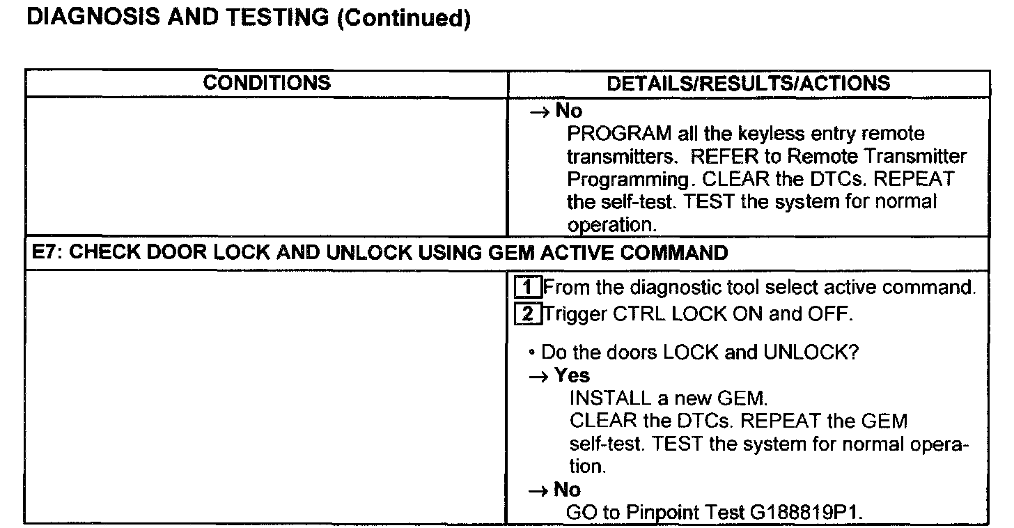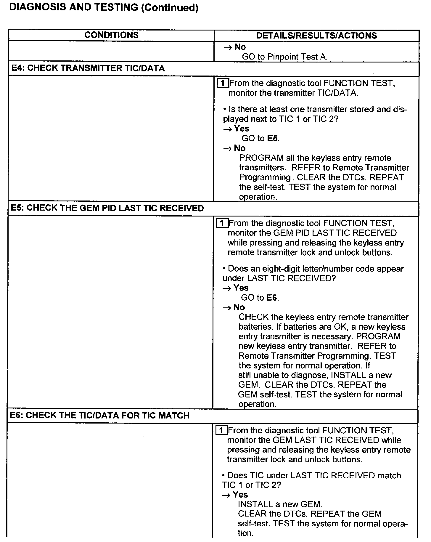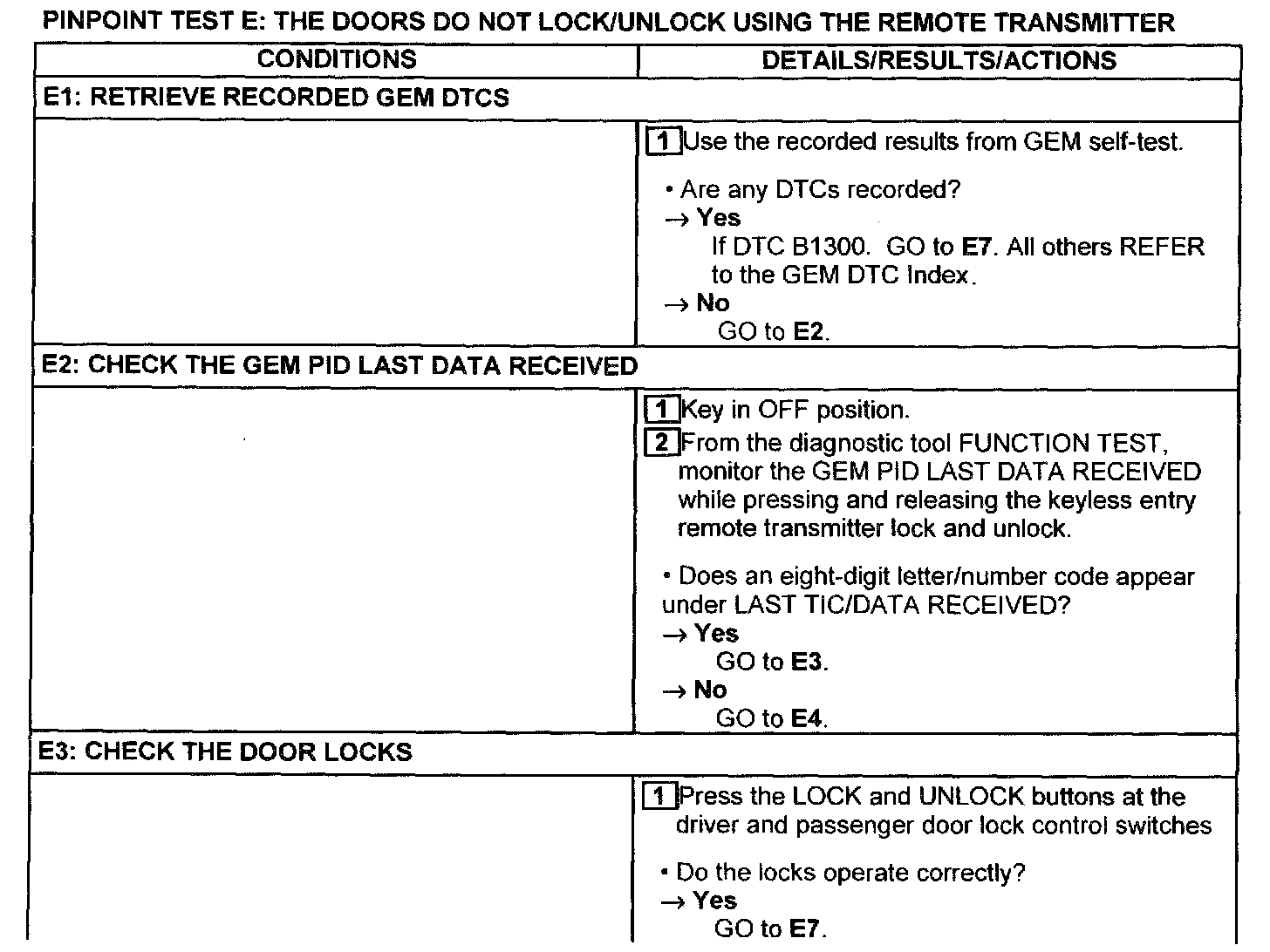 Test E: Doors Do Not Lock/Unlock Using the Remote Transmitter