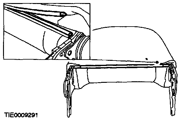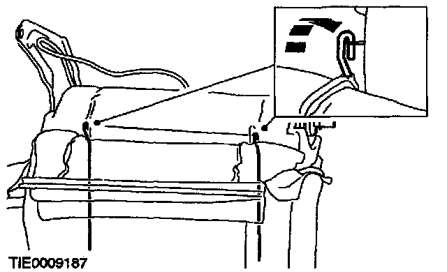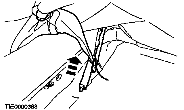 8. Attach the plastic retaining strip to secure the side air bag deployment sleeve.