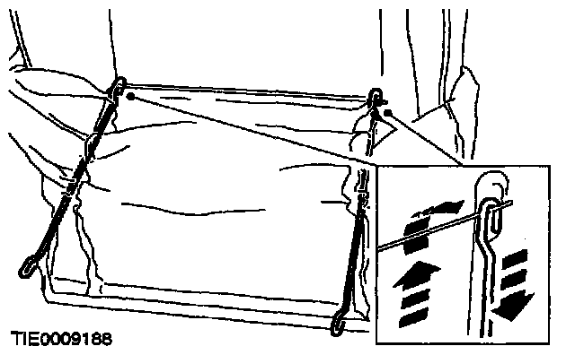 9. Detach the upper ends of the tensioning rods from the backrest.