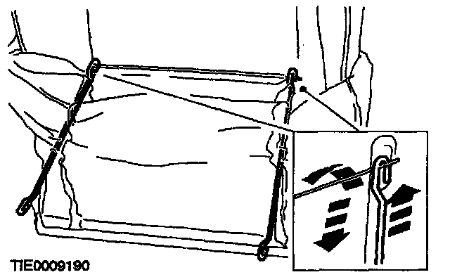 6. Install the tensioning rods into the backrest cover if a new backrest cover is to be installed.