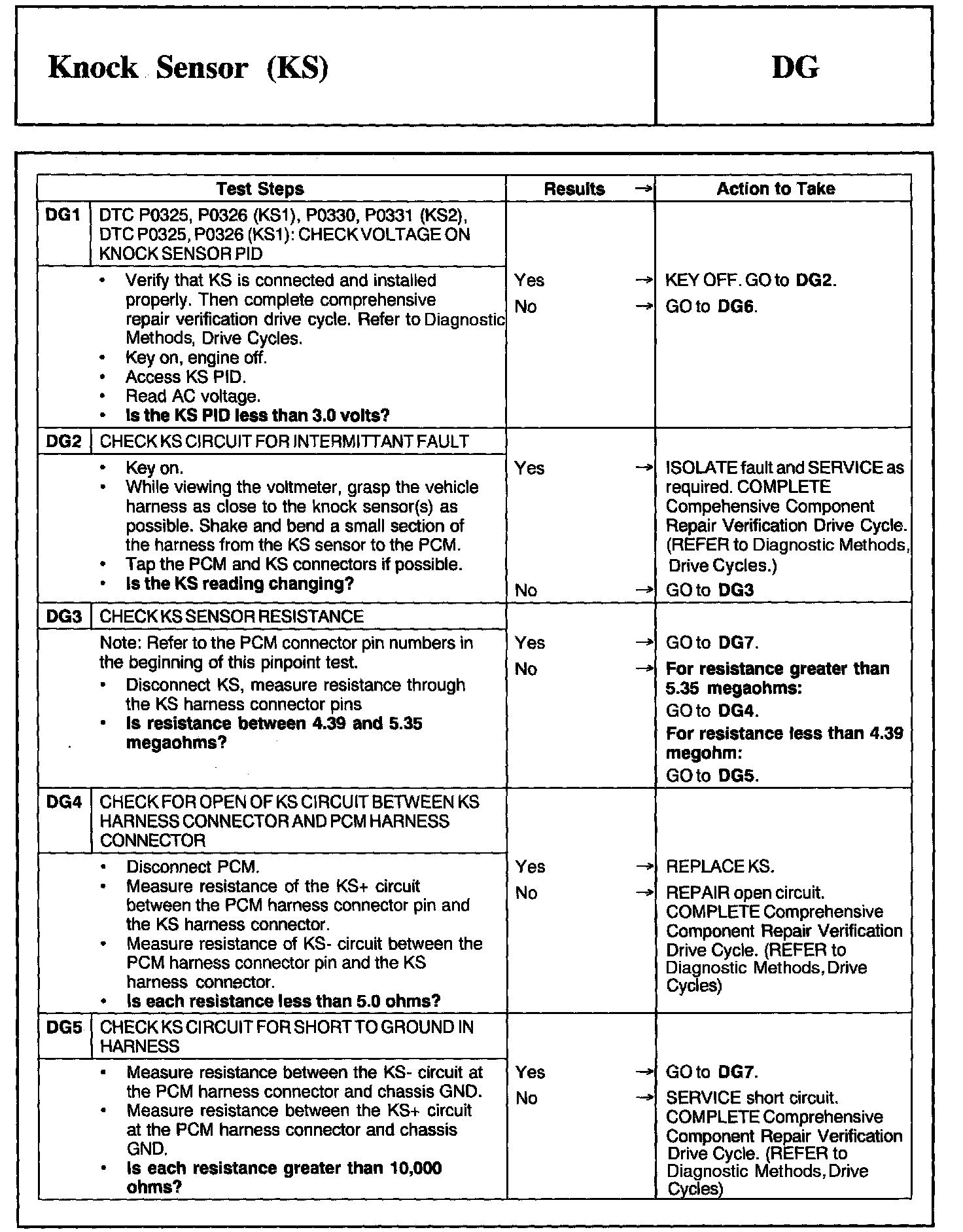 Tests DG: Knock Sensor (KS)