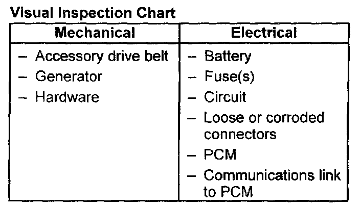 1. Verify the customer concern by operating the system.Visual Inspection Chart:
