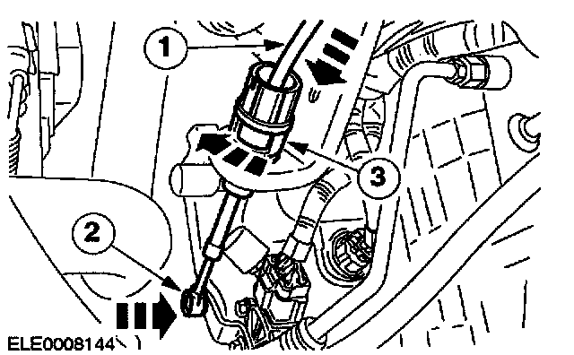 13. Clip the selector lever cable into the right-hand side of the bracket.