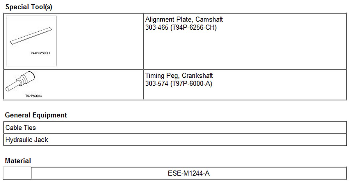 NOTE: Ford does not provide camshaft gear timing marks, or information to perform timing belt service without the special tools shown in this procedure.