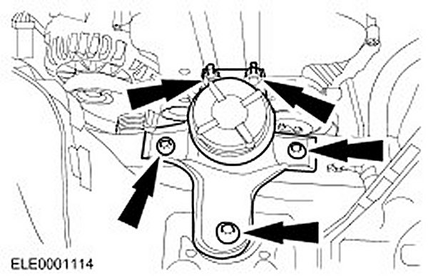 5. Loosen the coolant pump pulley retaining bolts.