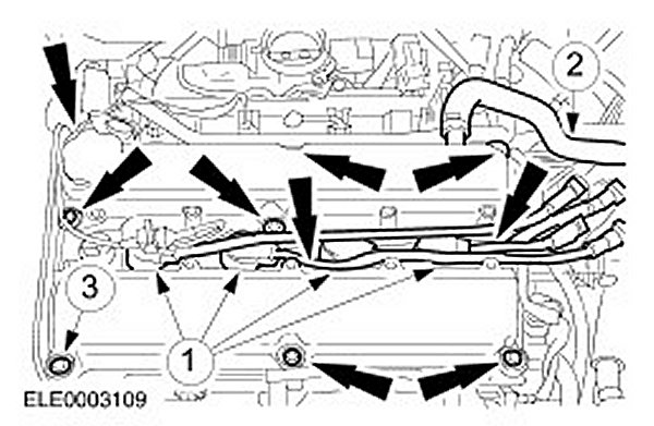 21. CAUTION: Do not pull the cable when removing the spark plug connectors. If necessary, remove the ignition cables from the ignition coil to avoid kinking the cables. Turn the spark plug connectors slightly before removing to loosen the seal.