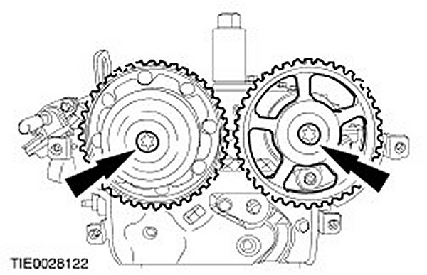 CAUTION: The camshaft must be held stationary with an open ended wrench or a suitable pair of locking pliers. Do not use the alignment tool to hold the camshaft in position or damage to the camshaft may occur.