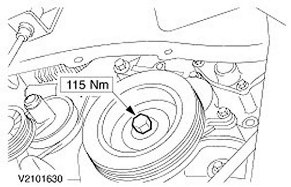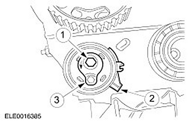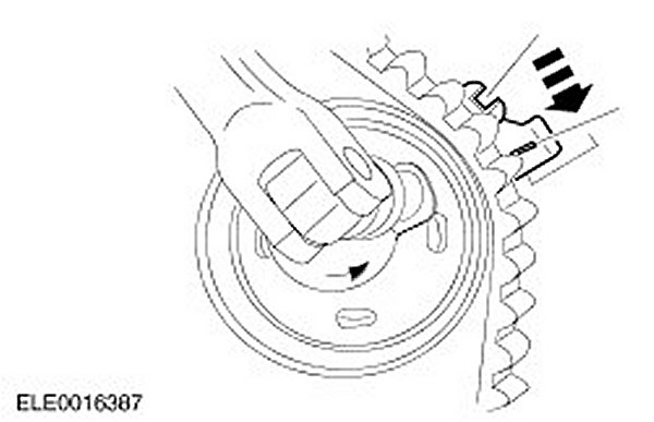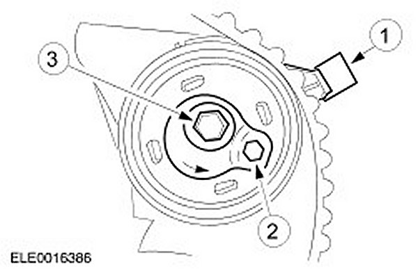 5. CAUTION: Incorrect timing belt tension will result in incorrect valve timing.