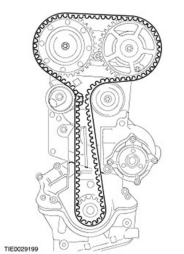 - Starting from the crankshaft timing belt pulley and working counterclockwise install the timing belt, keeping it under tension.