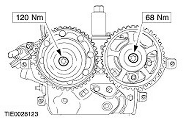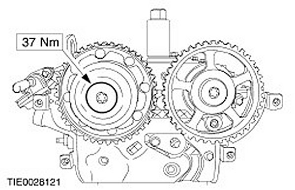 Tighten the camshaft pulley retaining bolts.