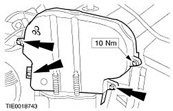 11. Detach the coolant expansion tank and position it to one side.