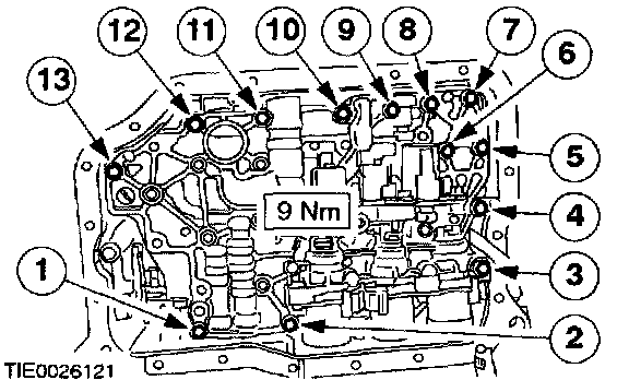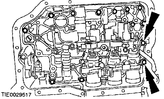 2. CAUTION: Make sure that the manual valve is in the manual control valve shift lever.