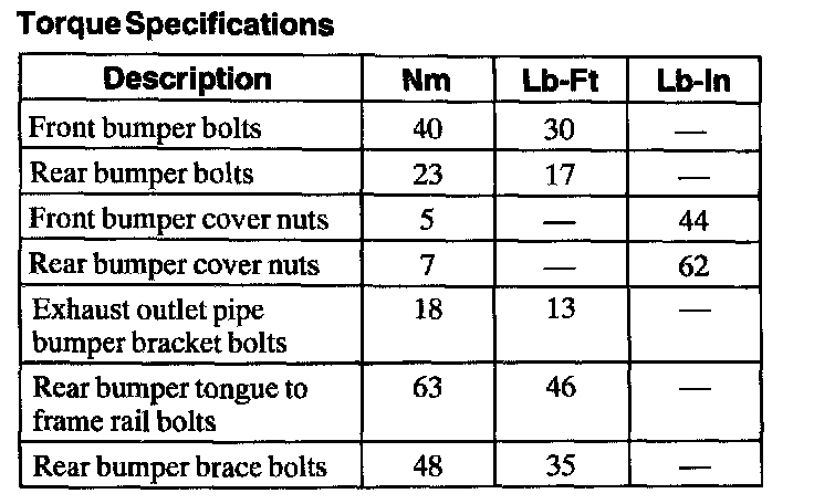 Torque Specifications:
