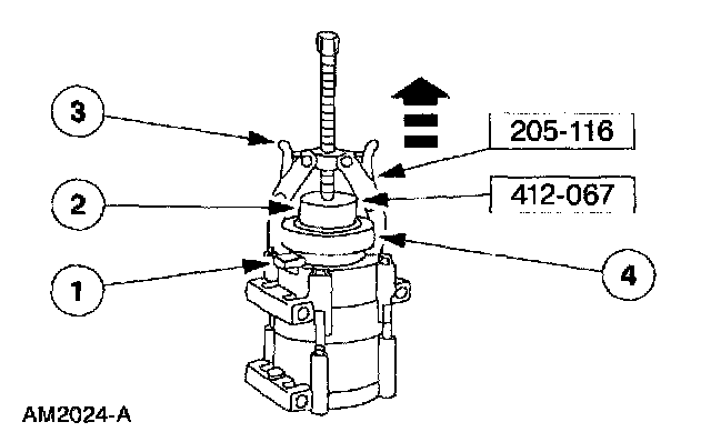 CAUTION: Do not use air tools. The A/C clutch field coil can be easily damaged.