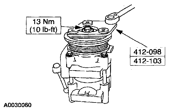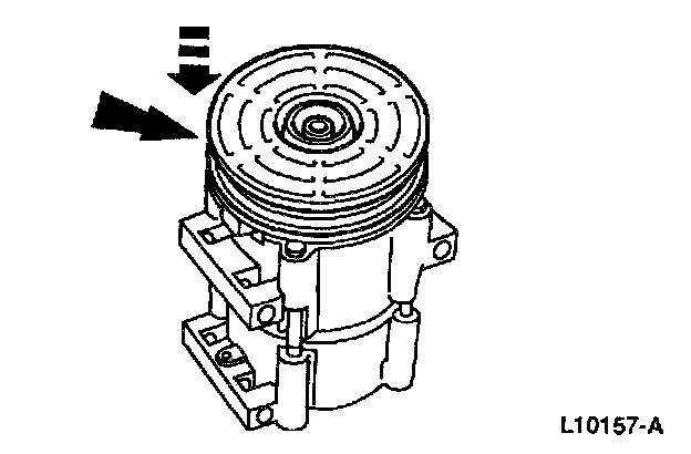 NOTE: The A/C clutch pulley is a tight fit on the A/C compressor head. It must be correctly aligned during installation.