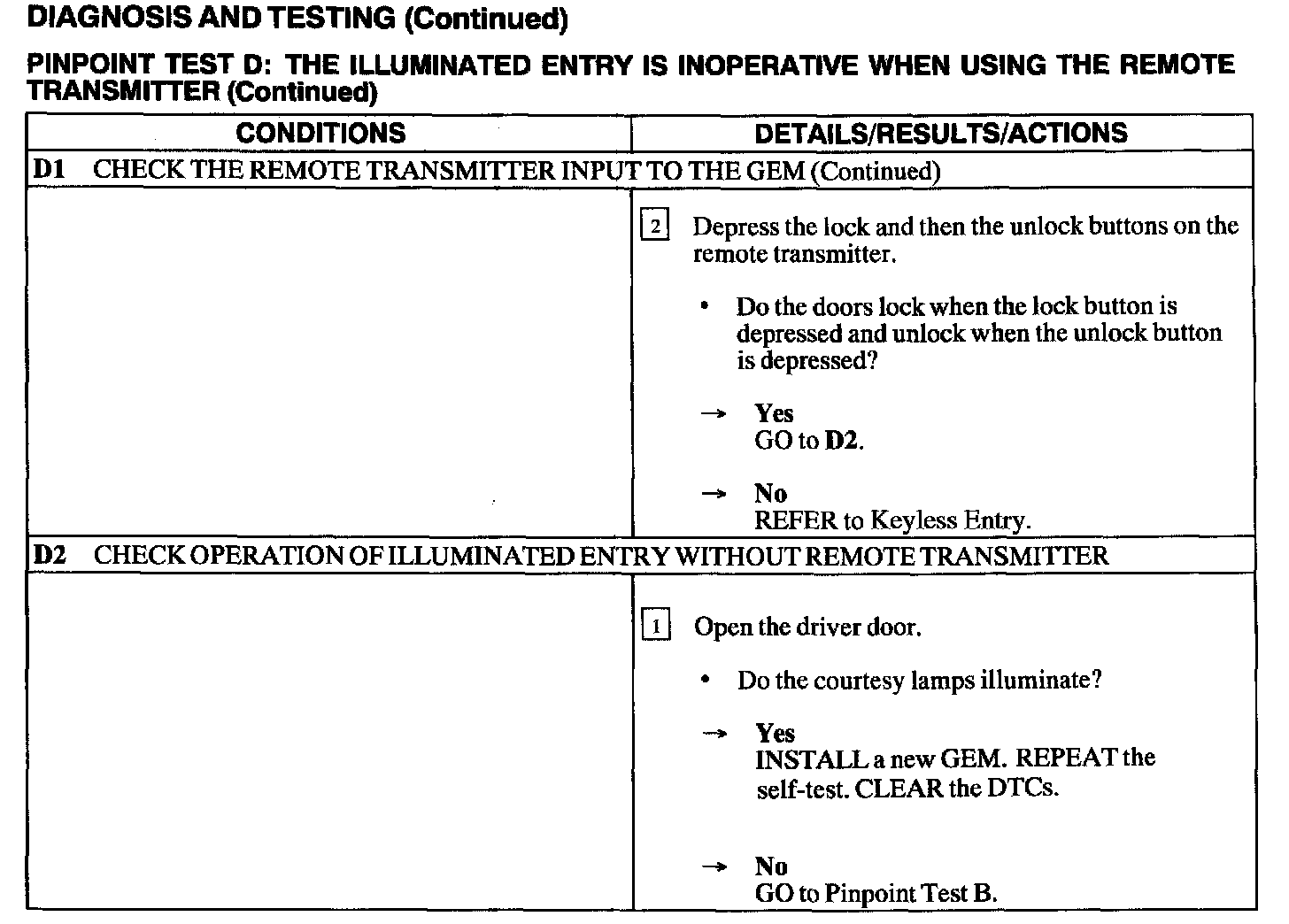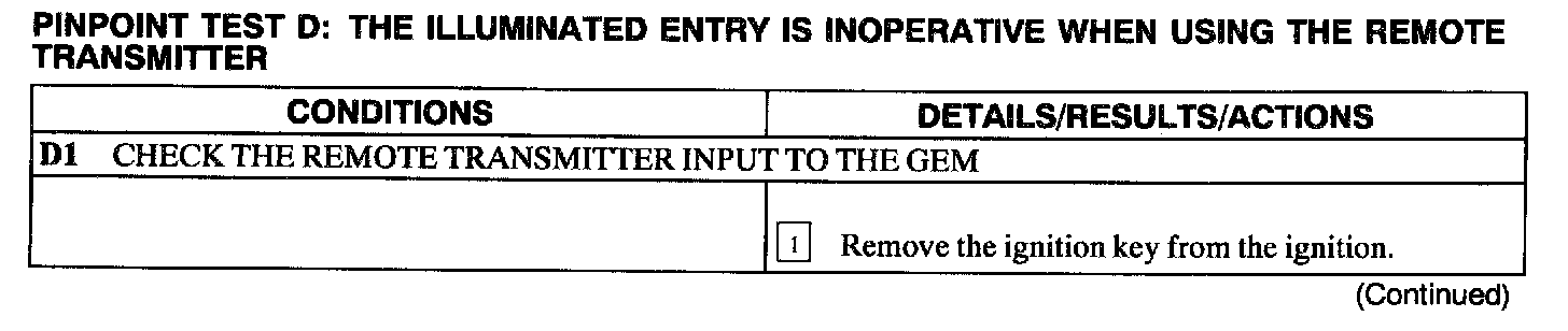 Test D: Illuminated Entry Inoperative Using Remote Transmitter